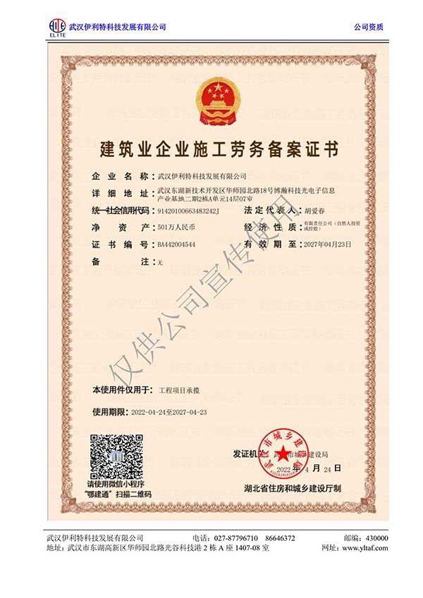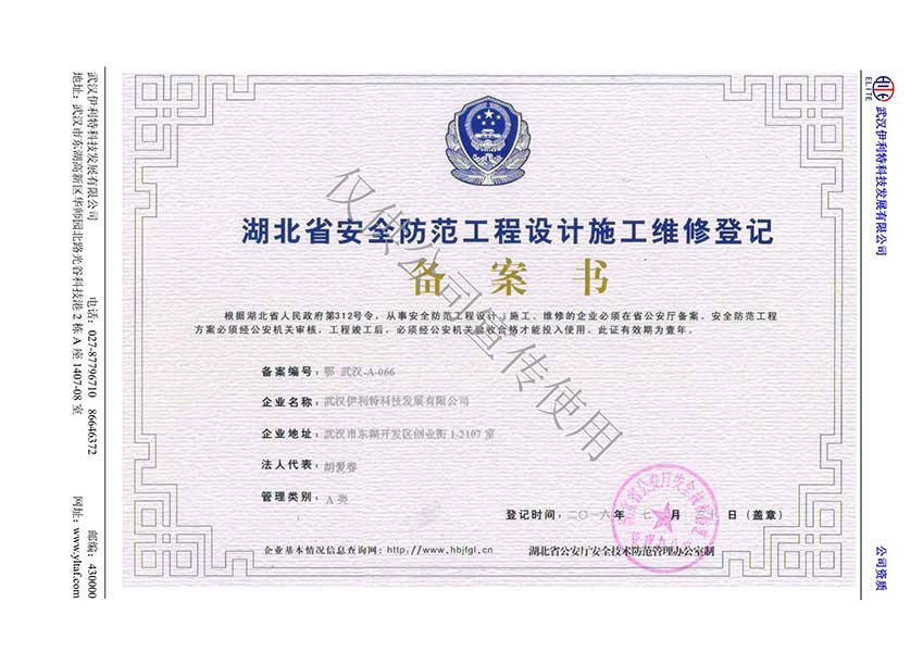 湖北省安防工程設計施工維修登記備案書