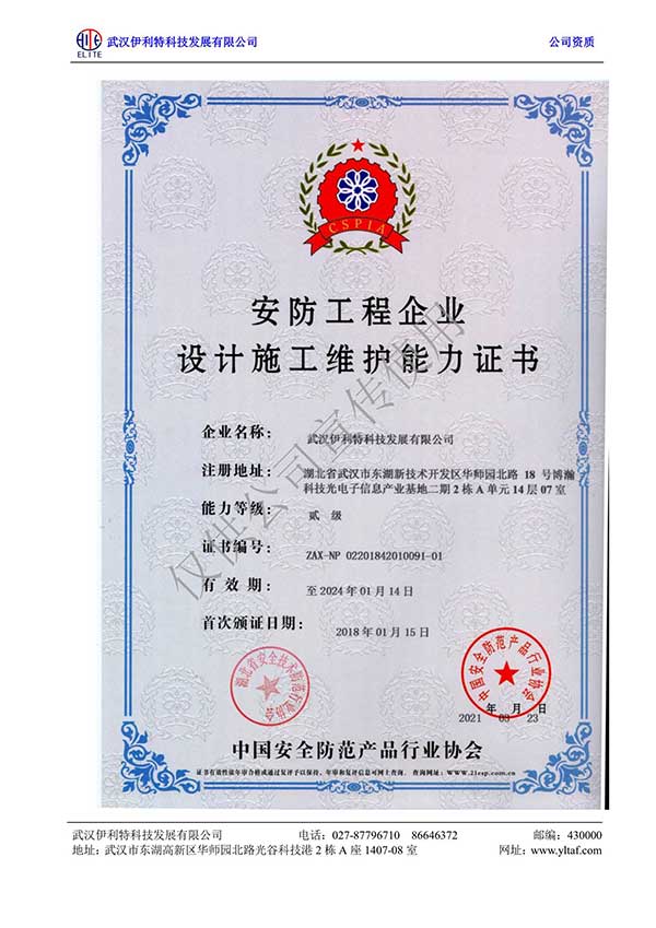 安防工程企業設計施工維護能力證書