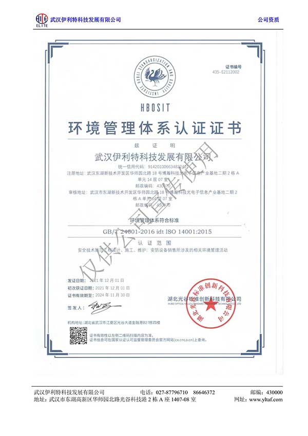 環境管理體系認證證書
