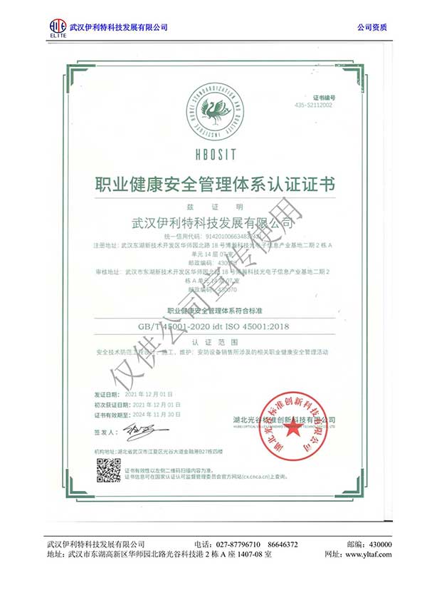 職業健康安全管理體系認證證書